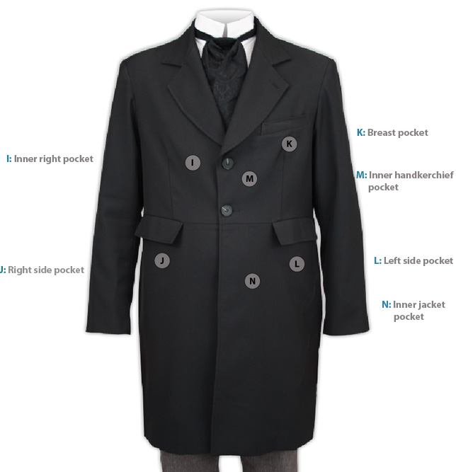 Inner Jacket pocketInner right pocket Breast pocket Inner handkerchiefpocket Right side pocket Left side pocket